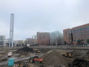 Wenn es um das südliche Überseequartier geht, muss man sich zunächst immer wieder aufs Neue die Fakten des gigantischen Projektes vergegenwärtigen: Auf rund 260.000 qm entsteht seit April 2017 ein innenstädtischer Einzelhandels-, Gastronomie-, Freizeit-, Dienstleistungs- und Wohnschwerpunkt, ein Stadtteil innerhalb eines Stadtteils. 400 Wohnungen, rund 30 gastronomische Einheiten, ein großes Multiplexkino mit 2.700 Sitzen, weitere Entertainmenteinrichtungen, 3 Hotels mit 800 Zimmern und ein Kreuzfahrtterminal mit 2 Liegeplätzen.